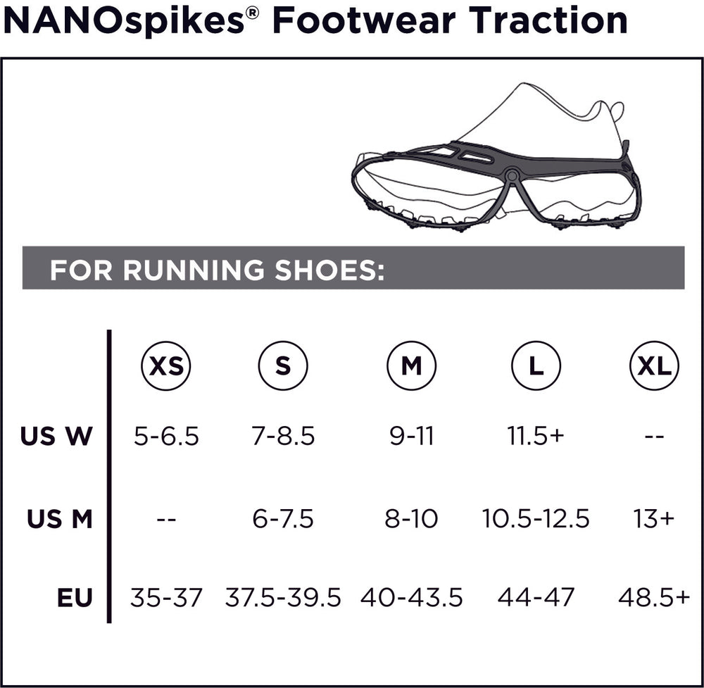 Slick roads, freezing temperatures and diminishing daylight call for traction with unmatched fit, performance and comfort. Redesigned from the ground up, NANOspikes footwear traction now delivers enhanced comfort, improved grip and a better fit on a wider variety of modern running footwear. So you have the freedom to keep moving confidently on icy streets and sidewalks, all winter long.